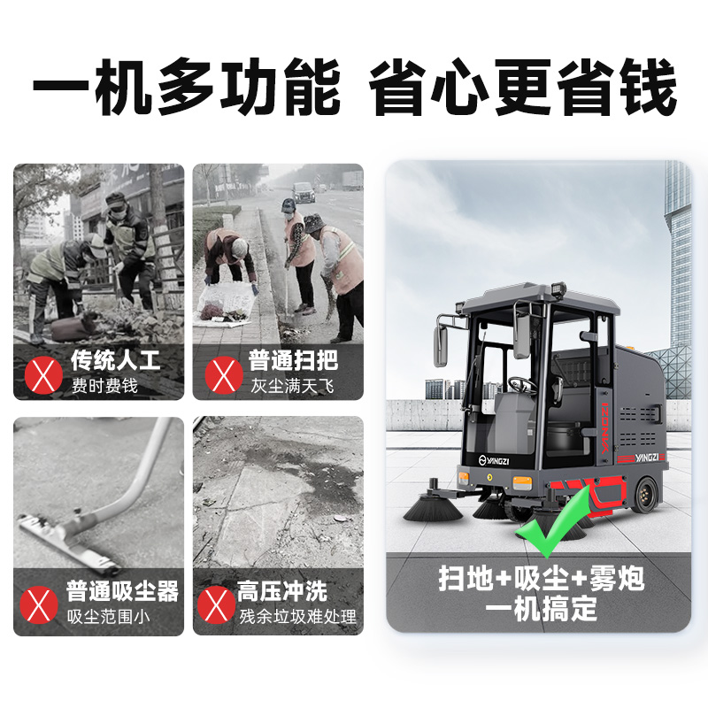 自營揚子掃地機YZ-SP25-13pro 全封閉式駕駛 工廠環衛吸掃灑清掃車