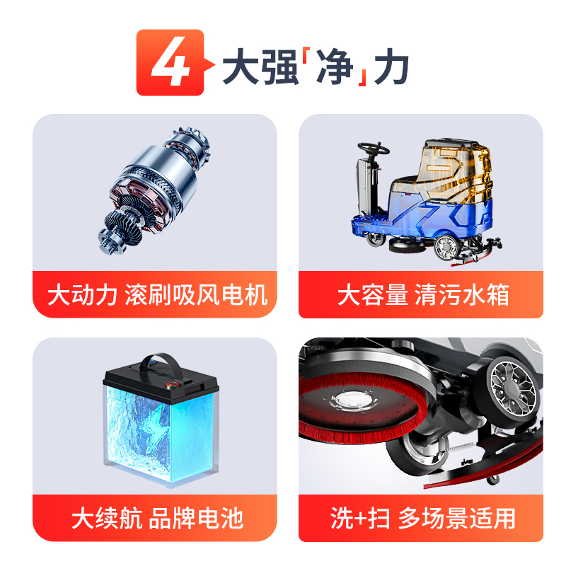 適配性:120AH長(zhǎng)續(xù)航實(shí)測(cè)4小時(shí),滿電覆蓋全域2次清潔,手推輕便,適配食品廠環(huán)氧地坪。