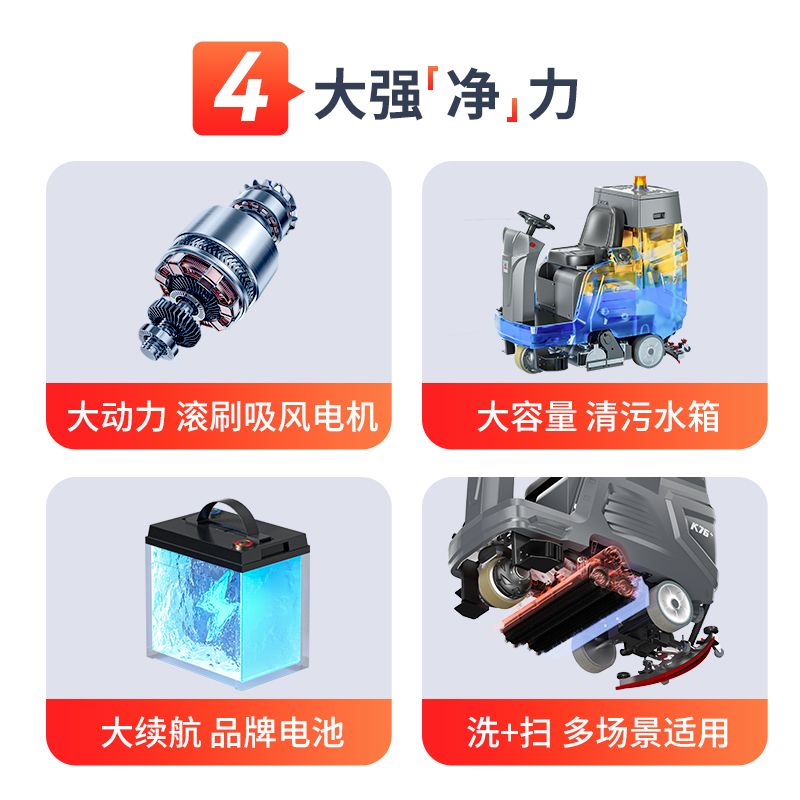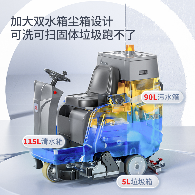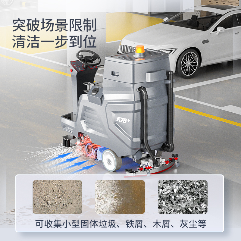 適用于車間、車庫、廣場等兼具粉塵與污漬的硬質地面的同步清掃與清洗作業
